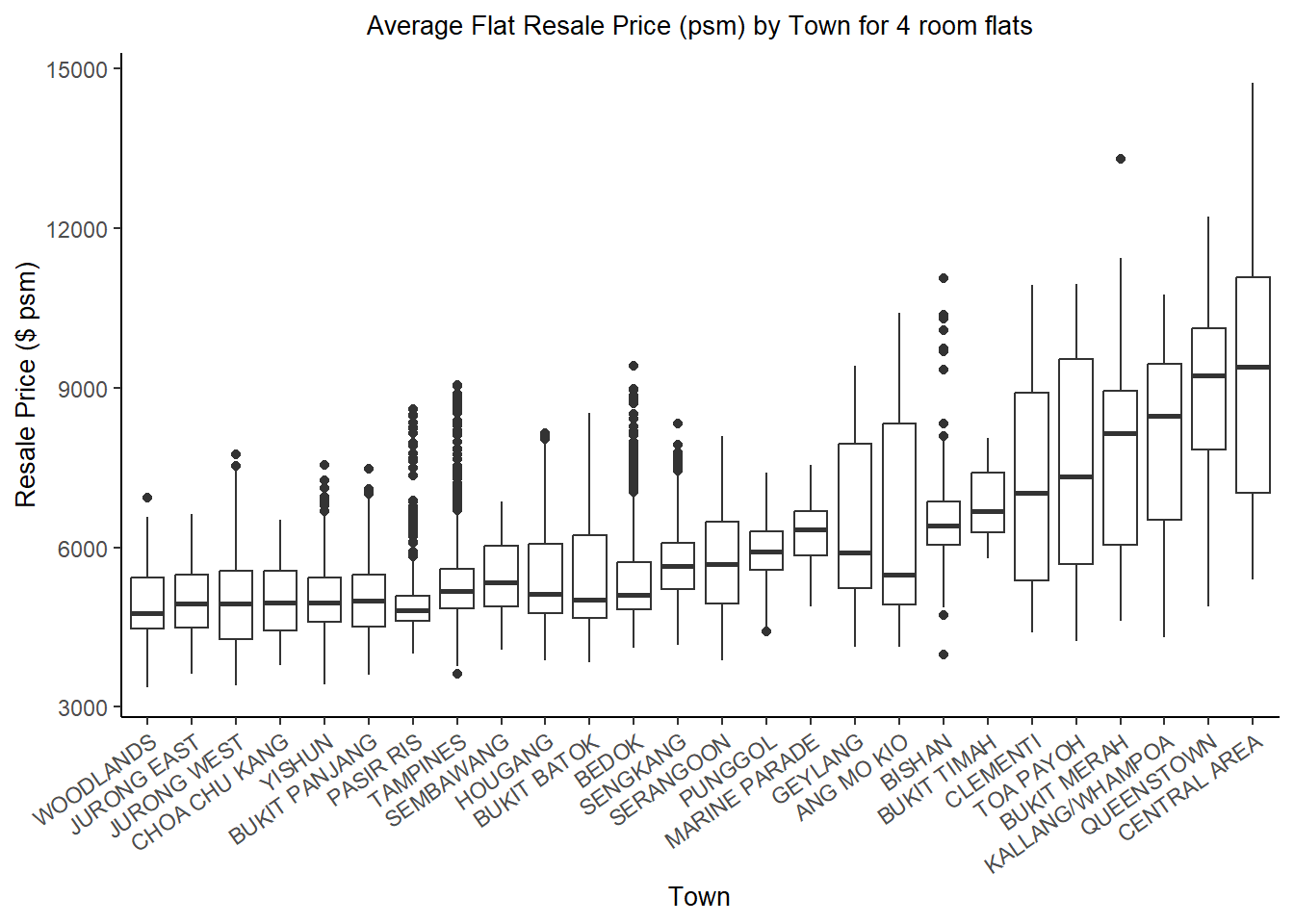 ggplot(SGResale_2022_bytown, aes(x=reorder(town, price_per_sqm), y=price_per_sqm)) +